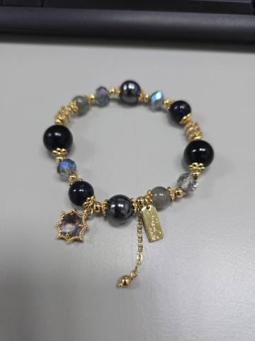「星空閃耀星河手鍊」以黑曜石、藍砂石與月光石打造,搭配14K真金鍍層與晶透切割珠,宛如將夜空星河收藏於手腕之間。黑與藍的深邃色彩閃爍著細緻光澤,配上柔和月光石點綴,散發神秘優雅的氣質。