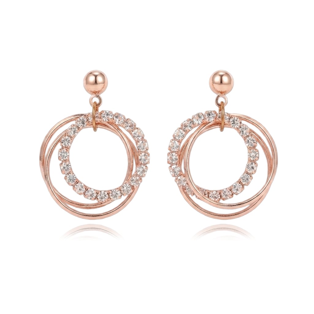 時尚優雅三環鑲鑽 無耳洞黏貼式耳環